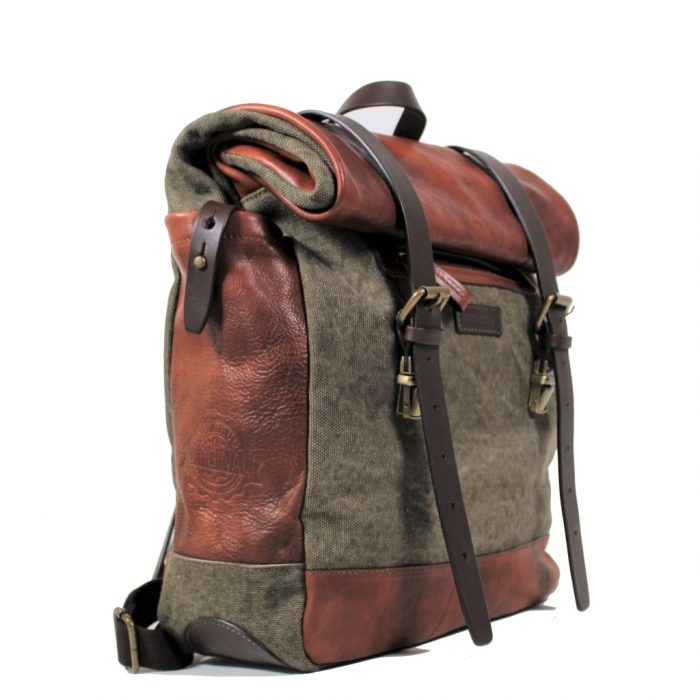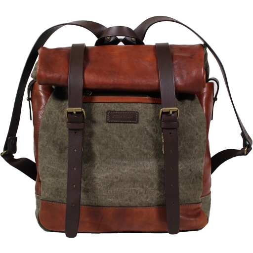 Chiarugi – SKYE LEATHER AND CANVAS ROLL ON TOP BACKPACK