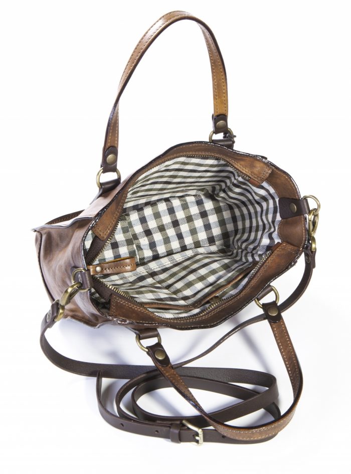 material | Vollnarbiges, pflanzlich gegerbtes italienisches Rindsleder mit Anilinlackierung am Griff. Poliester und Baumwolle Innenfutter. Alter Messingbeschlag |
