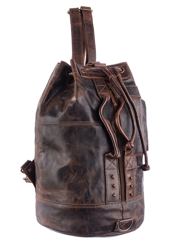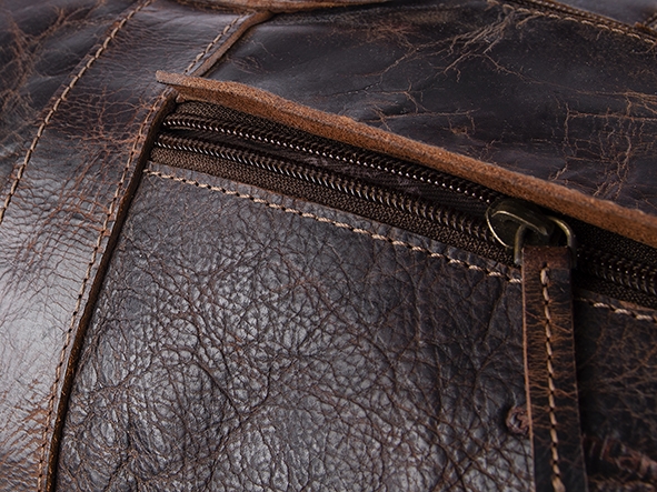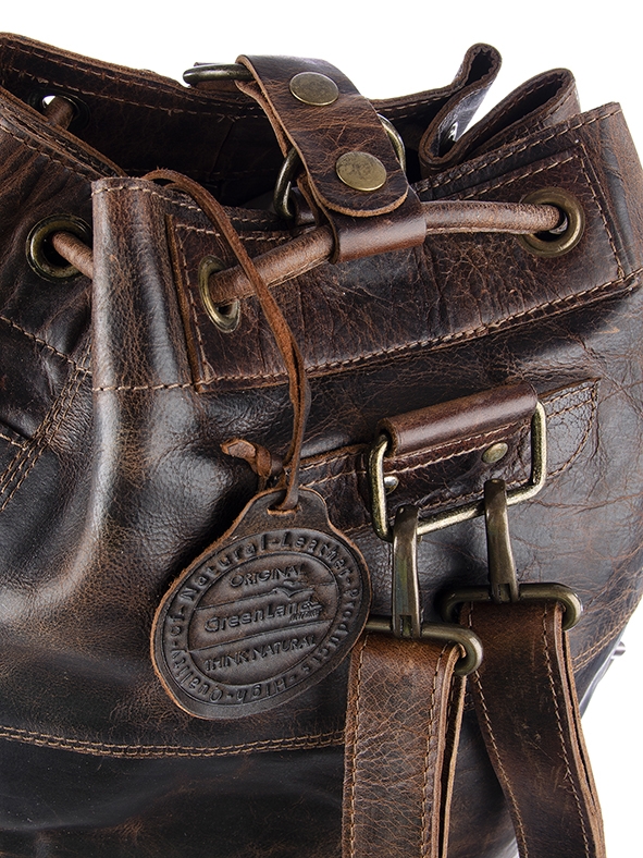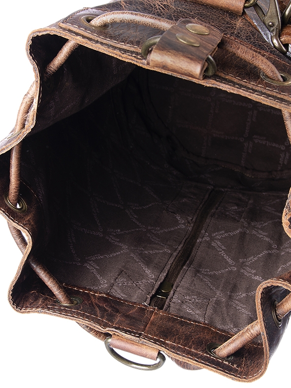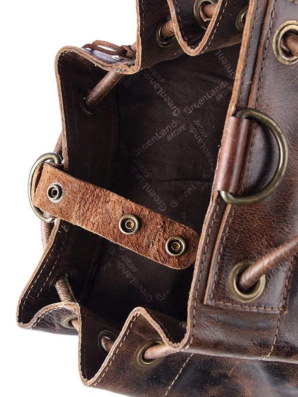 - großes Hauptfach schließt von oben mit Lederband zum Zuziehen
