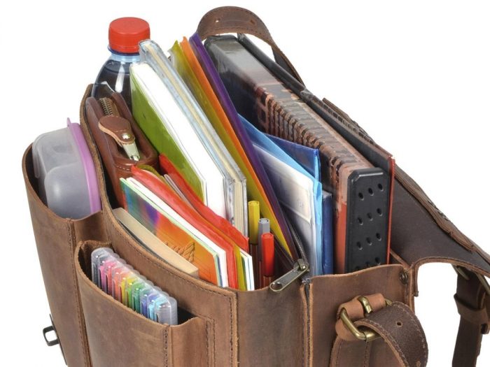 • naturbelassenes ca. 2,5mm starkes Leder – offenkantig in aufwendiger Sattlertechnik verarbeitet – als Schultasche geeignet ab der 2./3. Schulklasse