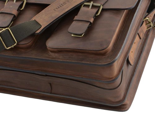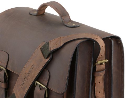 Moderne Aktentasche aus hochwertigem, robustem Leder im used Look. Die aparte Lehrertasche von RUITERTASSEN ist nicht nur für Lehrer eine gute Wahl. Die robuste Schultasche bietet im Inneren ausreichend Platz für die wichtigen Dinge des beruflichen Alltags. Neben Stiftetuis, Handys und Tablets können sogar Ordner im DIN A4 Format sicher verstaut werden. Die schönen Modelle Old School Classic begeistern im angesagten Vintage Stil. Das verarbeitete robuste Leder ist im used Look vorbehandelt und dunkelt mit der Zeit weiter nach. Mit der richtigen Lederpflege bleibt diese Aktentasche viele Jahre lang geschmeidig und schön. Die Schultasche ist bis in jedes Detail mit viel Liebe verarbeitet. Alle Lederschnittkanten sind versiegelt, so dass die wertvollen Dinge rundum gegen Verschmutzungen, Staub und Nässe geschützt sind. Neben den drei Hauptfächern stehen zwei Reißverschlussfächer und zwei Vortaschen für z.Bsp. die Geldbörse oder das Schlüsseletui sowie Stiftschlaufen, ein schmales Einsteckfach und eine Handytasche. Mit dieser Lehrertasche, die auch bei Studenten sehr beliebt ist, steckt jedes Ding an seinem Platz und ist mit einem Griff gefunden. Mit dieser Aktentasche für Lehrer wird Ordnung zur Selbstverständlichkeit. Verschlossen wird das Modell Schultasche mit zwei Schnappverschlüssen, die am Überhang integriert sind. Der in der Länge verstellbare Schultertragegurt kann bei Bedarf komplett entfernt werden, so dass die Tasche bequem am Tragegriff getragen werden kann. Diese vielseitige große Lehrertasche aus Leder von RUITERTASSEN ist ein echter Allrounder der Taschenwelt. Auf der Rückseite und auf dem Schulterpolster des Gurtes ist diese Schultasche für Lehrer mit dem Logo des Herstellers RUITERTASSEN verziert. Dieses Modell überzeugt auch als modisches Accessoire mit einem harmonischen Look.