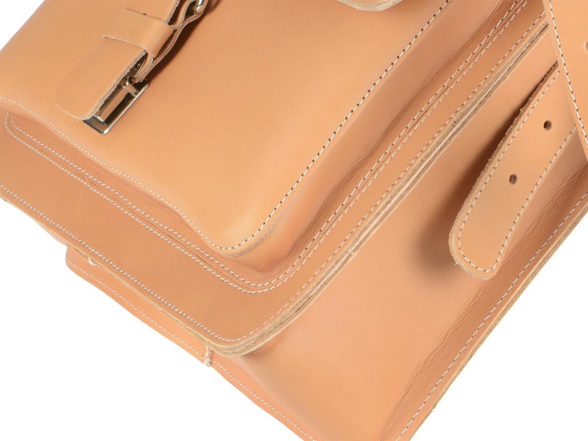 - naturbelassenes ca. 2,5mm starkes Leder – offenkantig in aufwendiger Sattlertechnik verarbeitet – als Schultasche geeignet ab der 2./3. Schulklasse