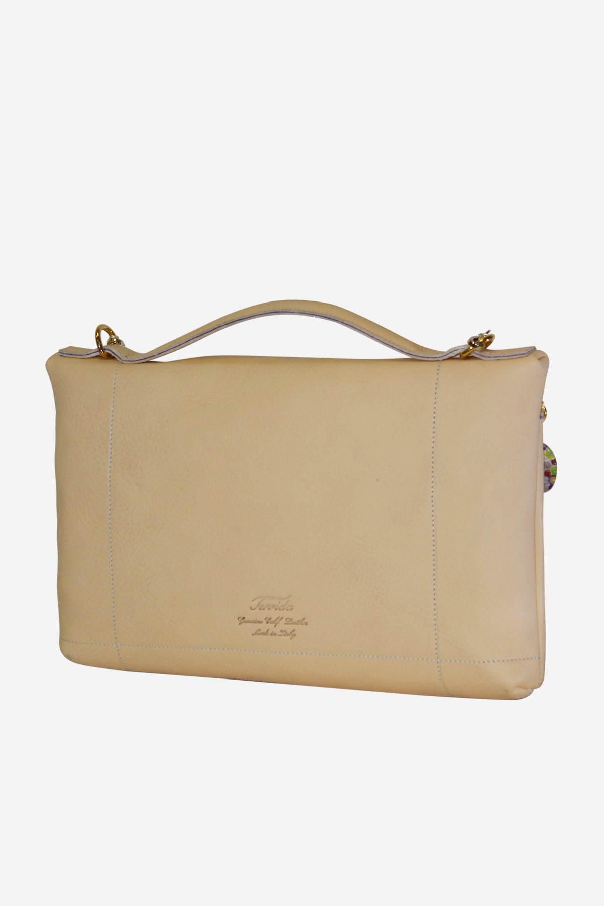 Diese elegante und feine Tasche hat einen einzigartigen und eleganten Stil, der nicht nur durch die Murrine, sondern auch durch andere Anhänger und Details aus kostbarem Glas verziert wird. Dies ist nicht nur eine Tasche, sondern ein Kunstwerk. Mikrofaser und Nähte bereichern das pflanzlich gegerbte Leder. Dadurch entstehen auf der Oberfläche schöne und fesselnde Farbspiele. Stil und Zweckmäßigkeit machen diese hübsche Handtasche aus. Handtasche oder Umhängetasche: Sie können den ergonomischen Griff oder die Schulterkette verwenden. Im Inneren befinden sich ein Hauptfach und eine Tasche für das Nötigste.