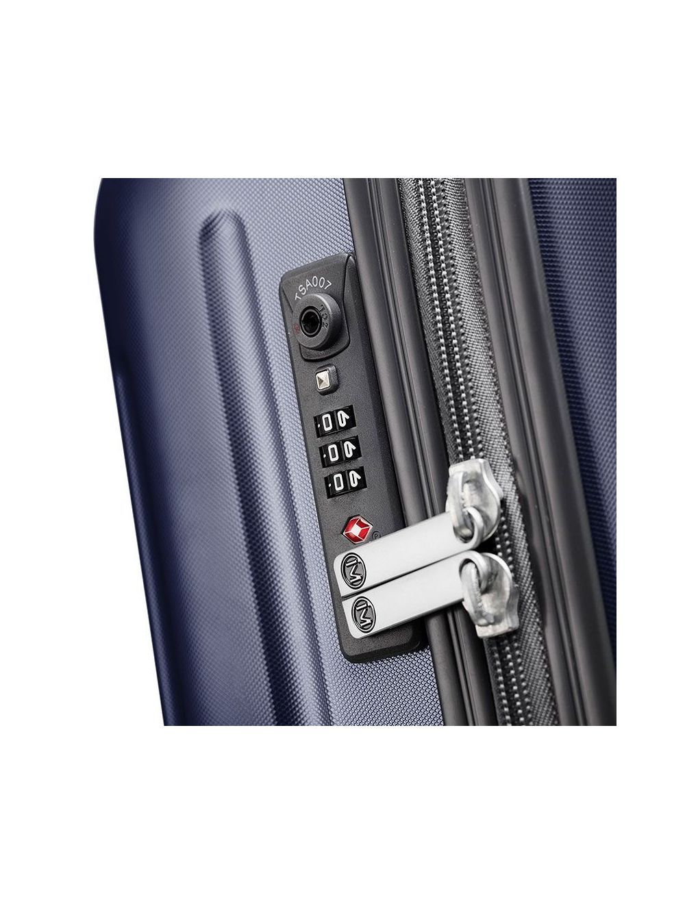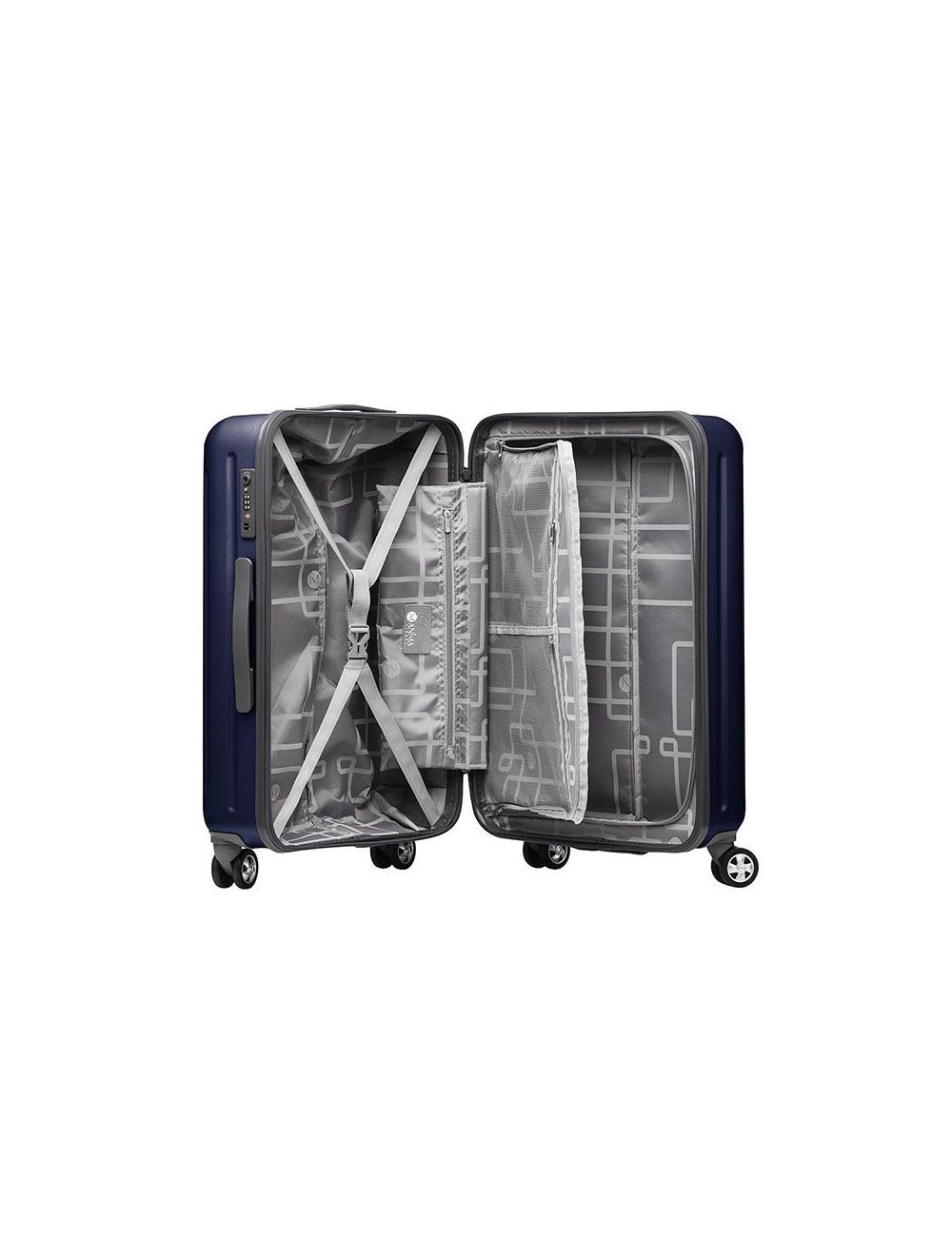 Der Kabinentrolley der Vertigo-Kollektion ist zugelassen, um in den Handgepäckfächern von Low-Cost Airlines untergebracht zu werden. Er ist hergestellt aus widerstandsfähigem und stoßfestem Polycarbonat. Ausgestattet mit Sicherheits-Diebstahlschutzsystem mit seitlichem Kombinationsschloss mit TSA.