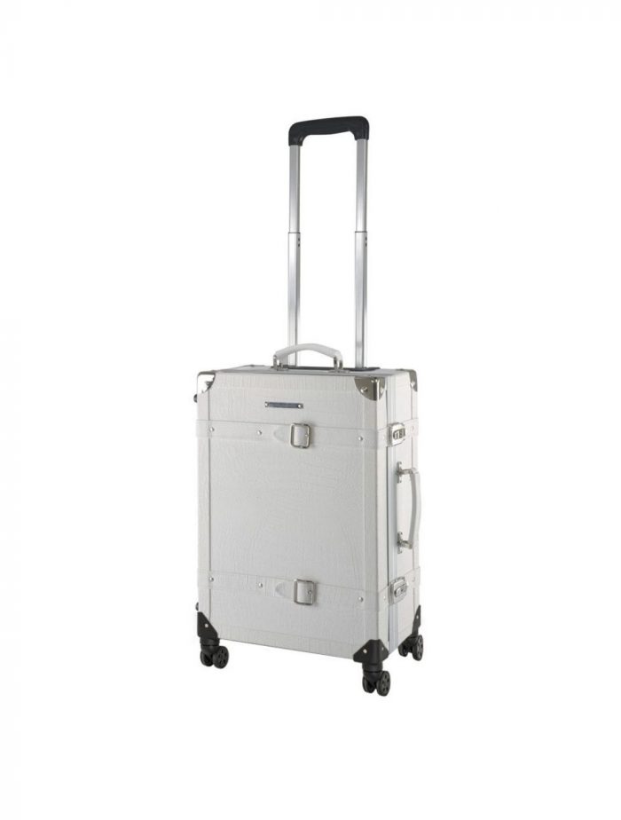The Vintage collection is handmade and 100% Made in Italy. The sides, locks and zips on the cases are made from coated aluminium, with corners in chrome-plated steel. The interior of this luggage has sophisticated finishes, made from 100% cotton/canvas. Fully padded interiors with an inside pocket and clothes retainer strips. All the attention to detail and sophistication that only real Made in Italy products can offer. Carefully selected materials and attention paid to every last detail. These characteristics perfectly meet modern travellers’ needs for functionality and resilience, no matter how they’re travelling, all with plenty of vintage charm. This luggage only comes in the most elegant colours possible: black and white, the two, classic, eternal and basic shades. The medium-sized wheeled suitcase is perfect for trips lasting 3 to 5 days. All Made-in-Italy products are made to order. As these items are handmade, processing times may vary from 3 to 7 working days. Delivery times are therefore around two weeks from the order.